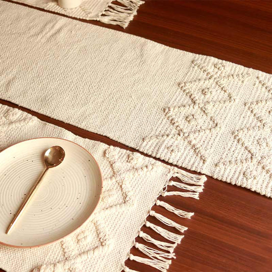 White handloom cotton table linen set(1 Table runner + 2mats)