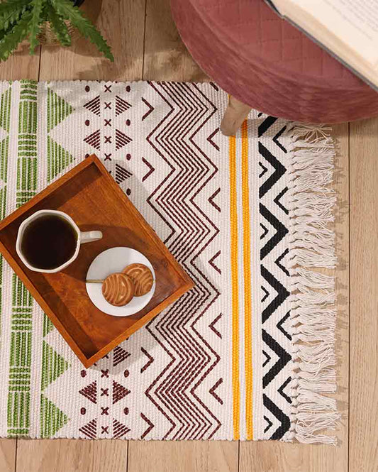 Trio Multicolor Printed Cotton Dhurrie _ Floormat